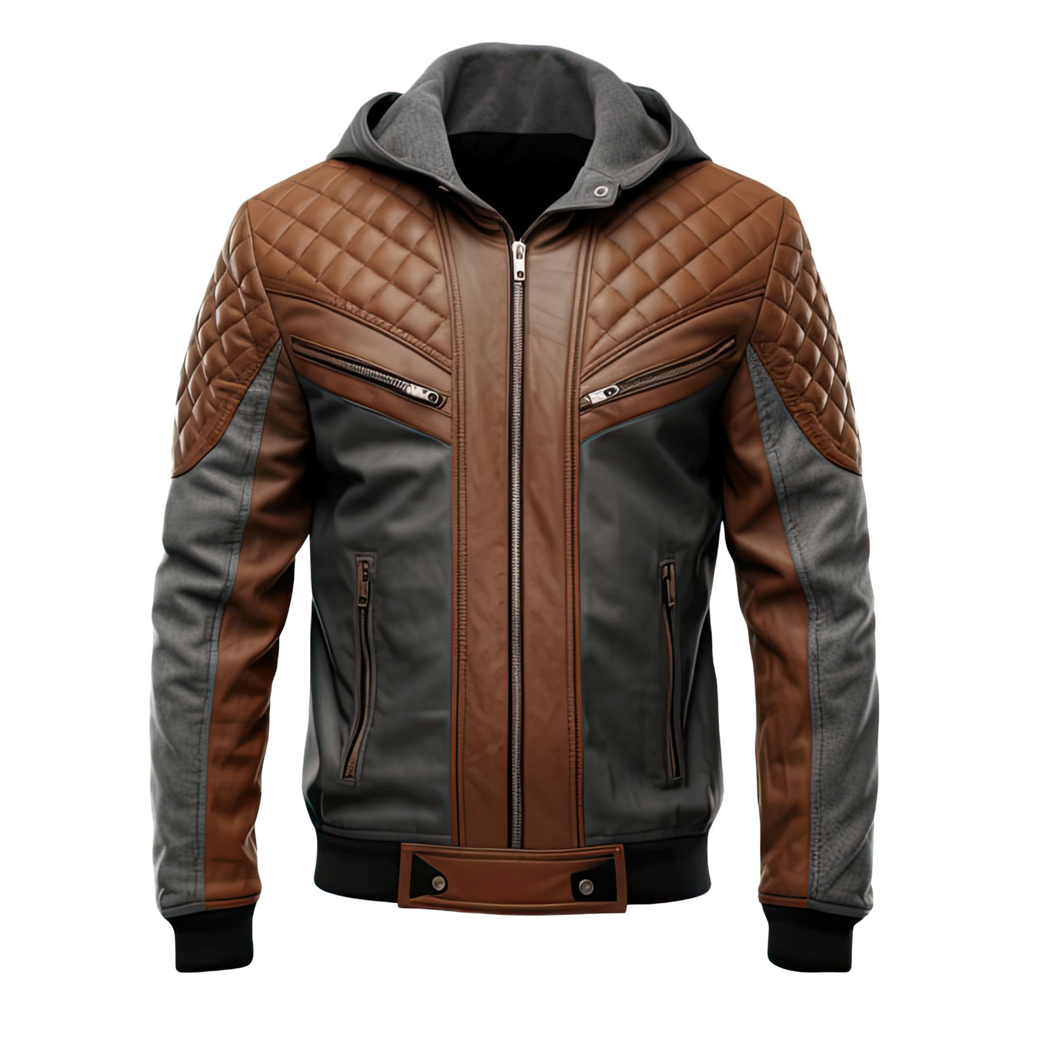 Men’s Charcoal Grey Brown Biker Hooded Bomber Leather Jacket