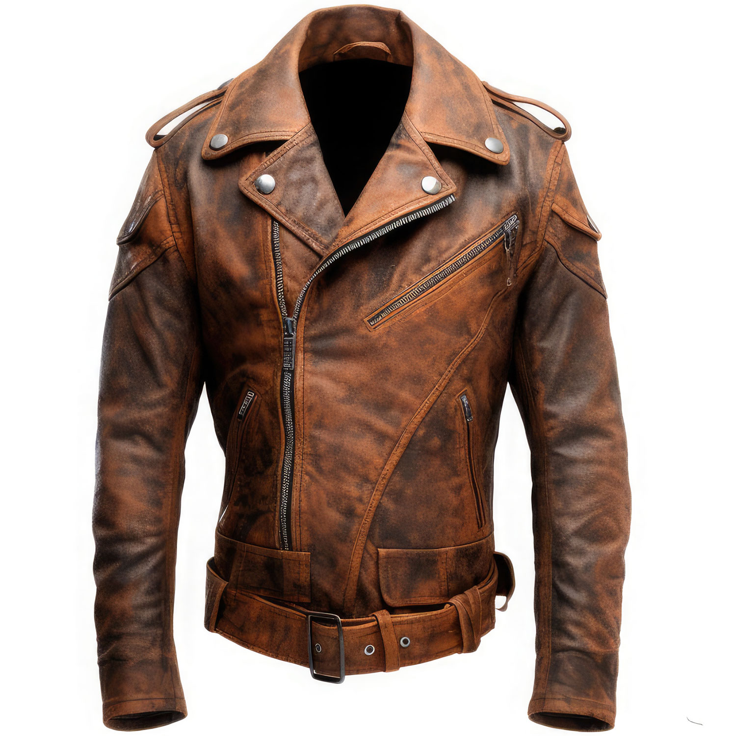 Men’s Distressed Brown Genuine Sheepskin Leather Jacket, designed to bring a rugged charm to your wardrobe. The handpicked sheepskin leather, known for its durability, is fashioned into a jacket with a unique distressed finish, offering an authentic, lived-in look. The notched lapel collar and asymmetric YKK zipper front closure of the classic biker style, while the slanted zipper pockets provide ample space for your essentials. Shoulder epaulettes add a military edge, enhancing the jacket’s structured silhouette. For a perfect fit, adjust the waist belt, designed with a stylish buckle and metal eyelets. This jacket is not just a garment it’s a statement piece that embodies adventure and style.