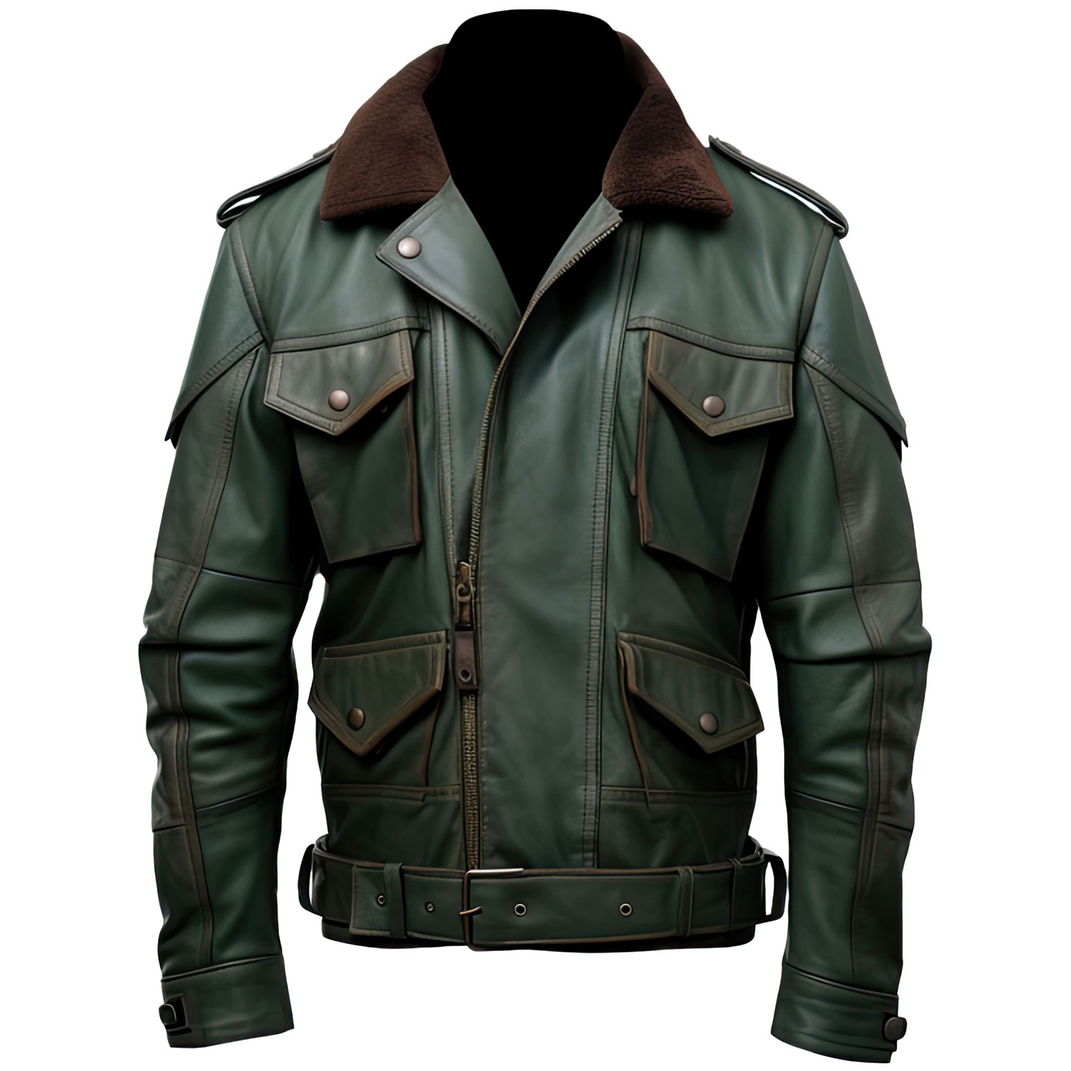 The Men’s Forest Green Genuine Sheepskin Soft Rib Knit Shirt Collar Sleek Belted Warm Military Style Fashionable Leather Jacket is a modern take on classic military design, infused with contemporary fashion elements. Crafted from the finest genuine sheepskin leather, this jacket not only stands out for its durability but also for its luxurious softness. The rib knit shirt collar introduces a touch of elegance, while the front YKK zipper and adjustable waist buckle belt ensures a perfect, comfortable fit. With its multiple utility pockets, this jacket combines functionality with sleek style, making it ideal for those seeking a blend of fashion-forward design and practicality. Whether for casual outings or more formal events, this leather jacket provides warmth, style, and versatility, making it a must-have addition to any wardrobe.